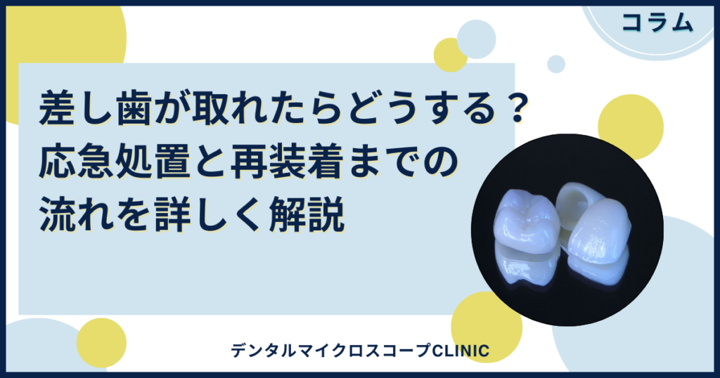 食事や会話中に突然差し歯が取れると、驚き焦ってしまいますよね。すぐに歯医者に行けないからと、市販の接着剤で応急処置を考えていませんか?その自己判断は、歯の寿命を...
