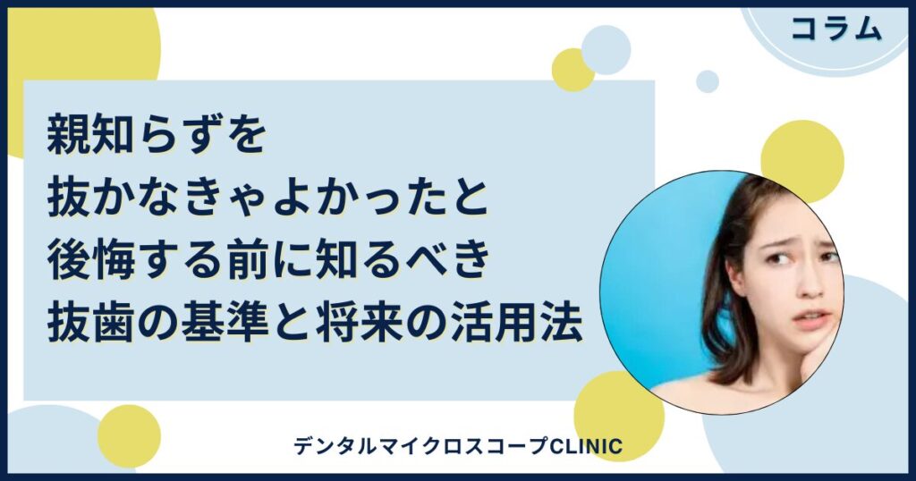親知らずが生えてきた際、「すぐに抜かなければいけないの?」「抜いた後に後悔したという話を聞いて不安……」と悩む方は非常に多いです。インターネットで検索すると「抜...