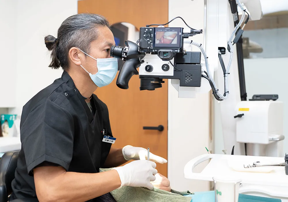 当院では、全ての治療にマイクロスコープを採用することで、肉眼では捉えきれない口腔内の細部まで精密に診査・把握し、適切な治療を提供します。