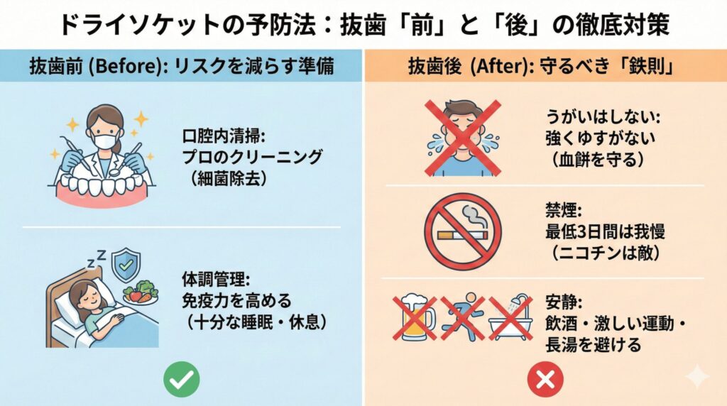 抜歯「前」と「後」の対策が、リスクを最小限に抑えます。
