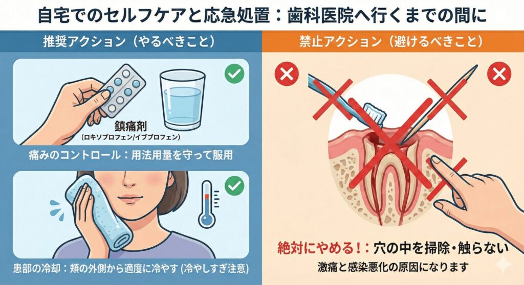 歯科医院へ行くまでの間、自宅でできる「これ以上の悪化を防ぐ方法」です。