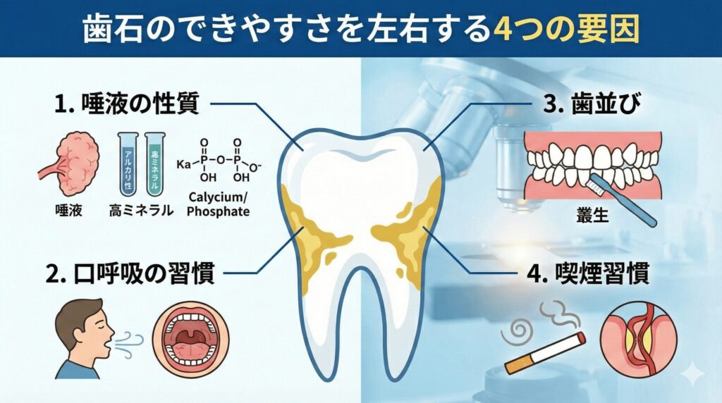 「同じように磨いているのに、自分だけ歯石がつきやすい気がする」と感じる場合、そこには明確な理由があることが多いです。