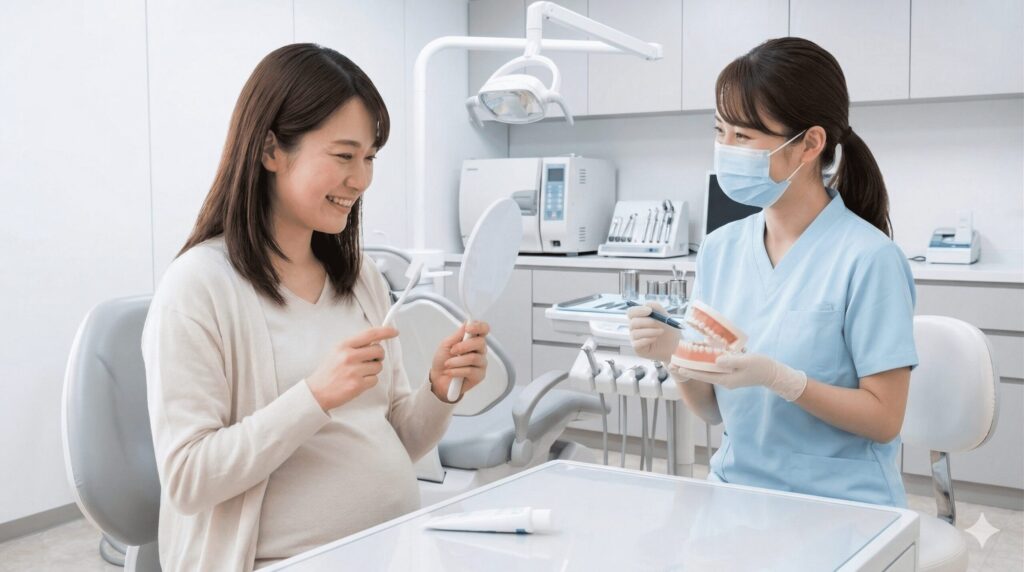 妊娠中はホルモンバランスの変化やつわりなど、口の環境が変わりやすい時期のため、普段以上に丁寧な予防ケアを心がけることが大切です。
