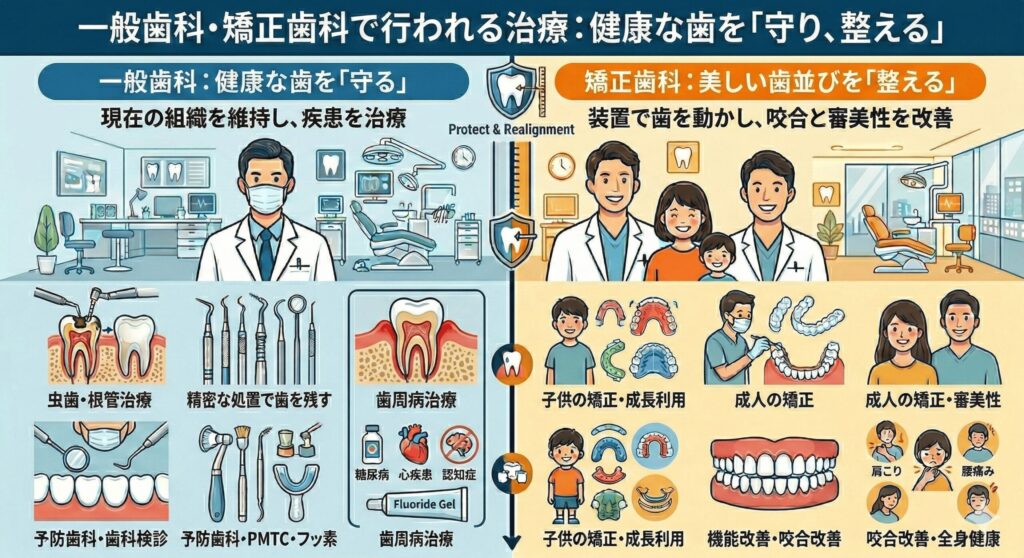 一般歯科・矯正歯科で行われる治療:健康な歯を「守り、整える」