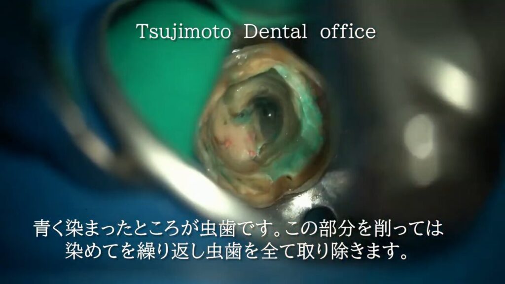 虫歯にのみ色が付く特殊な液を使い、勘や経験に頼ることなく、感染した部分を正確に特定し、取り除きます。