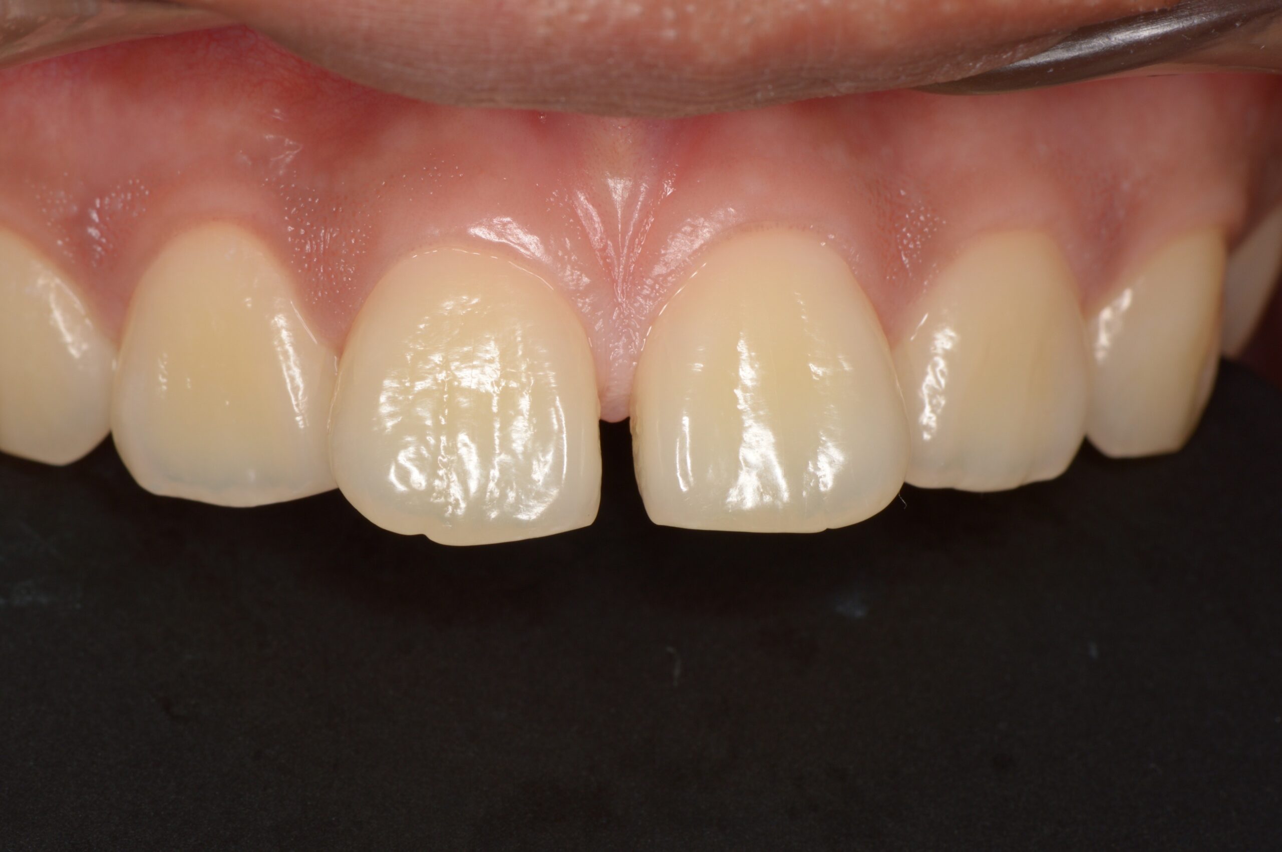 「矯正治療後にできてしまった歯のすき間が気になる」というご希望から、ダイレクトボンディングでの治療となりました。