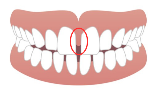 特に、以下の図のように上の前歯の真ん中にすき間がある状態は「正中離開(せいちゅうりかい)」と呼ばれ、悩んでいる方が多い代表的なすきっ歯です。