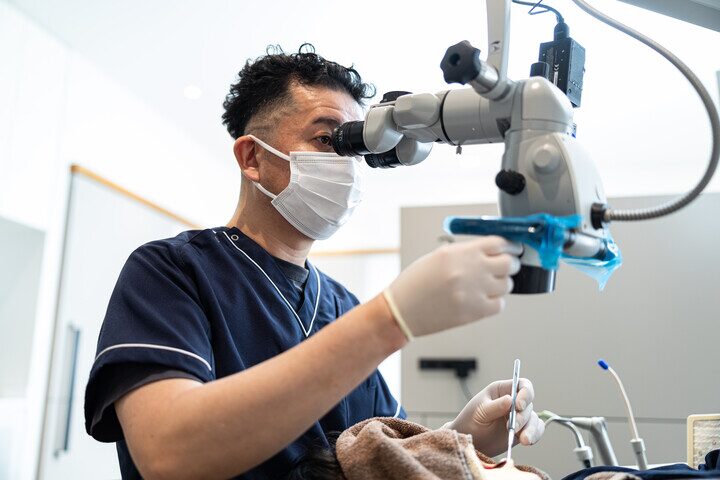 マイクロスコープを用いることで、歯の表面処理やレジンを充填する際、肉眼では見えないレベルで精密な操作が可能になり、歯と材料の「すき間」を徹底的になくします。