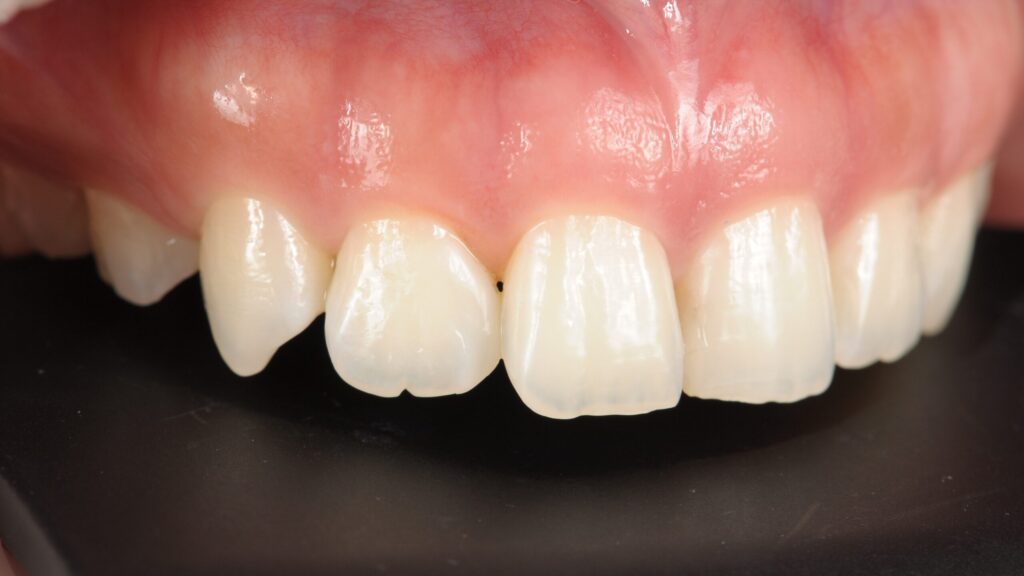前歯の間にわずかな隙間(すきっ歯)が残っております。