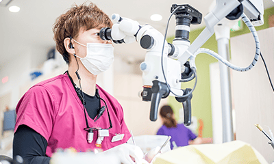 マイクロスコープを用いて拡大視野下で処置することで、治療の精密さを高めます。